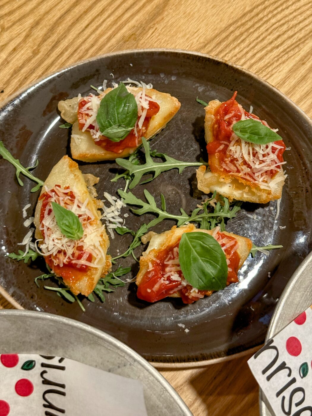Qui sotto invece “Il mio Ragù“, 12,50€ per ragù di San Marzano con i suoi sfilacci di manzo di fassona, in uscita Parmigiano Reggiano DOP 24 mesi razza frisona, fonduta di parmigiano, gocce di Pesto di Basilico DOP e basilico fresco.