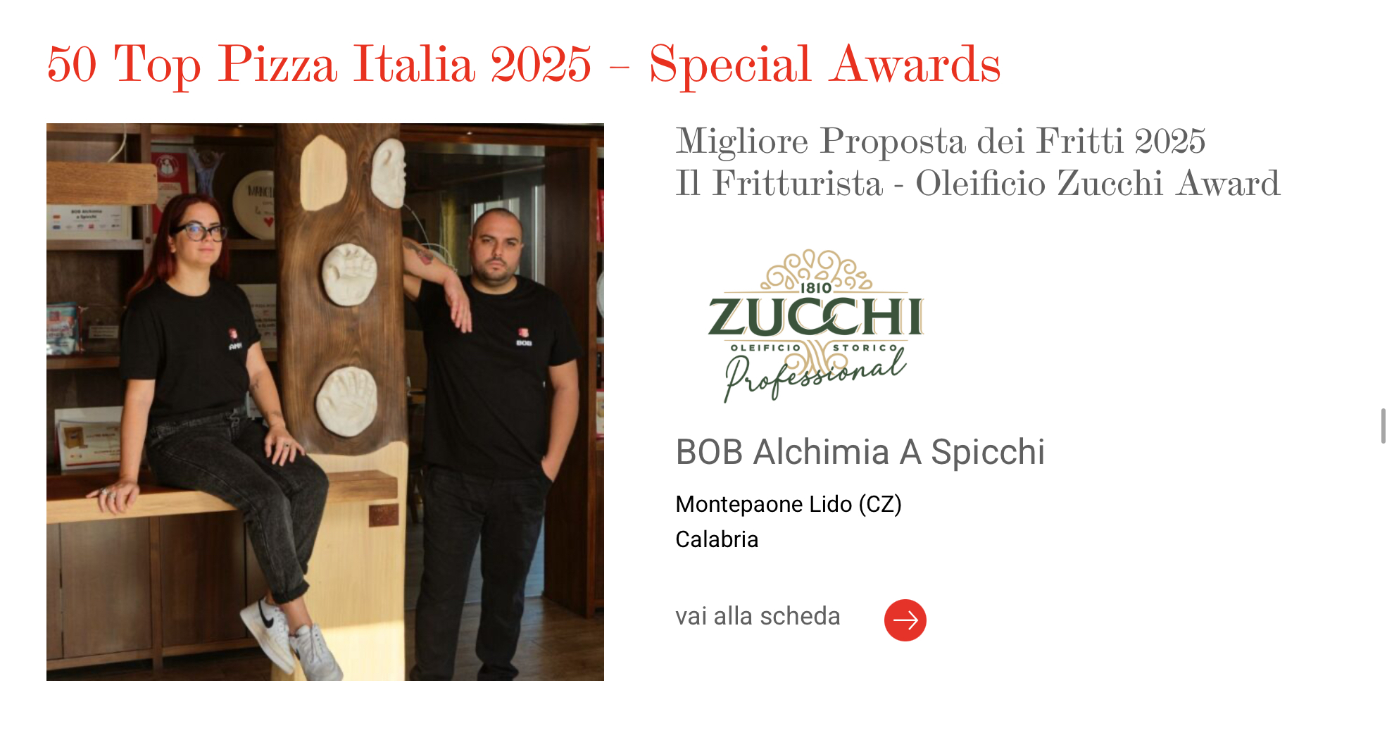 Uno in particolare ha generato parecchie perplessità, quello dedicato alla migliore proposta dei fritti assegnato a Bob Alchimia a Spicchi a Montepaone (qui la scheda nel nostro Pizza Advisor), in provincia di Catanzaro. La pietra dello scandalo è stata il fatto che la pizzeria non propone proposte fritte nel menu, per una scelta filosofica di anni ben conosciuta dai numerosi avventori ed esperti del settore.