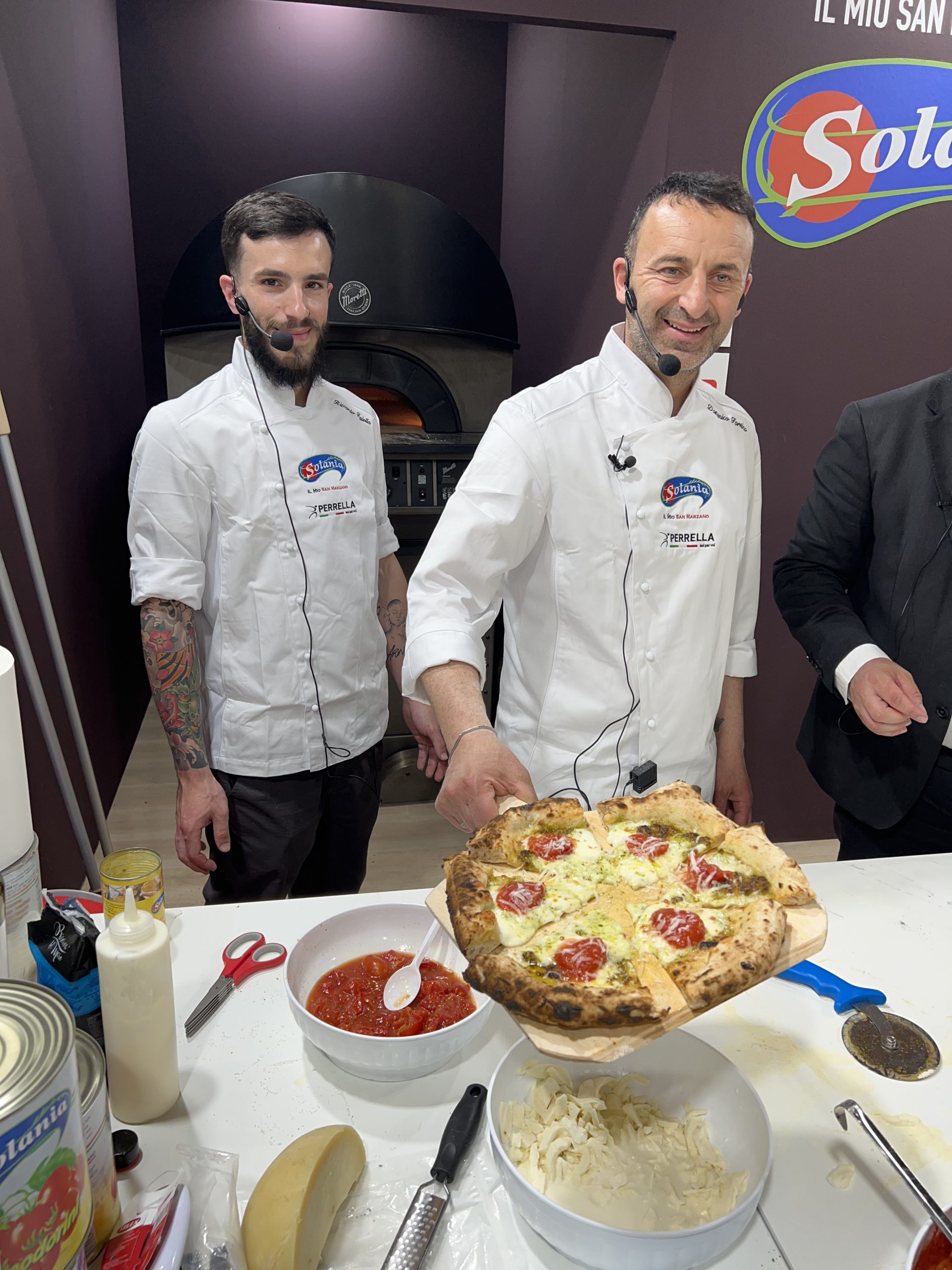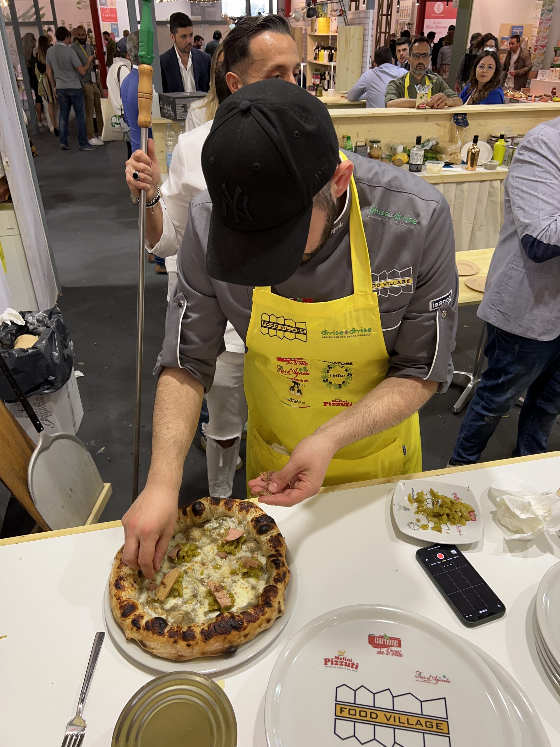 Focalizzandoci sul mondo pizza, erano presenti un bel po’ di produttori di farina, pomodori, mozzarella e tutto quello che serve per creare una succulente pizza nel piatto. Molti stand erano in condivisione tra più maestranze, tanti pizzaioli si sono alternati in esibizioni e showcooking allo scopo di far saggiare le proprie pizze con gli ingredienti dei produttori ospitanti, con risultati spesso eccellenti.