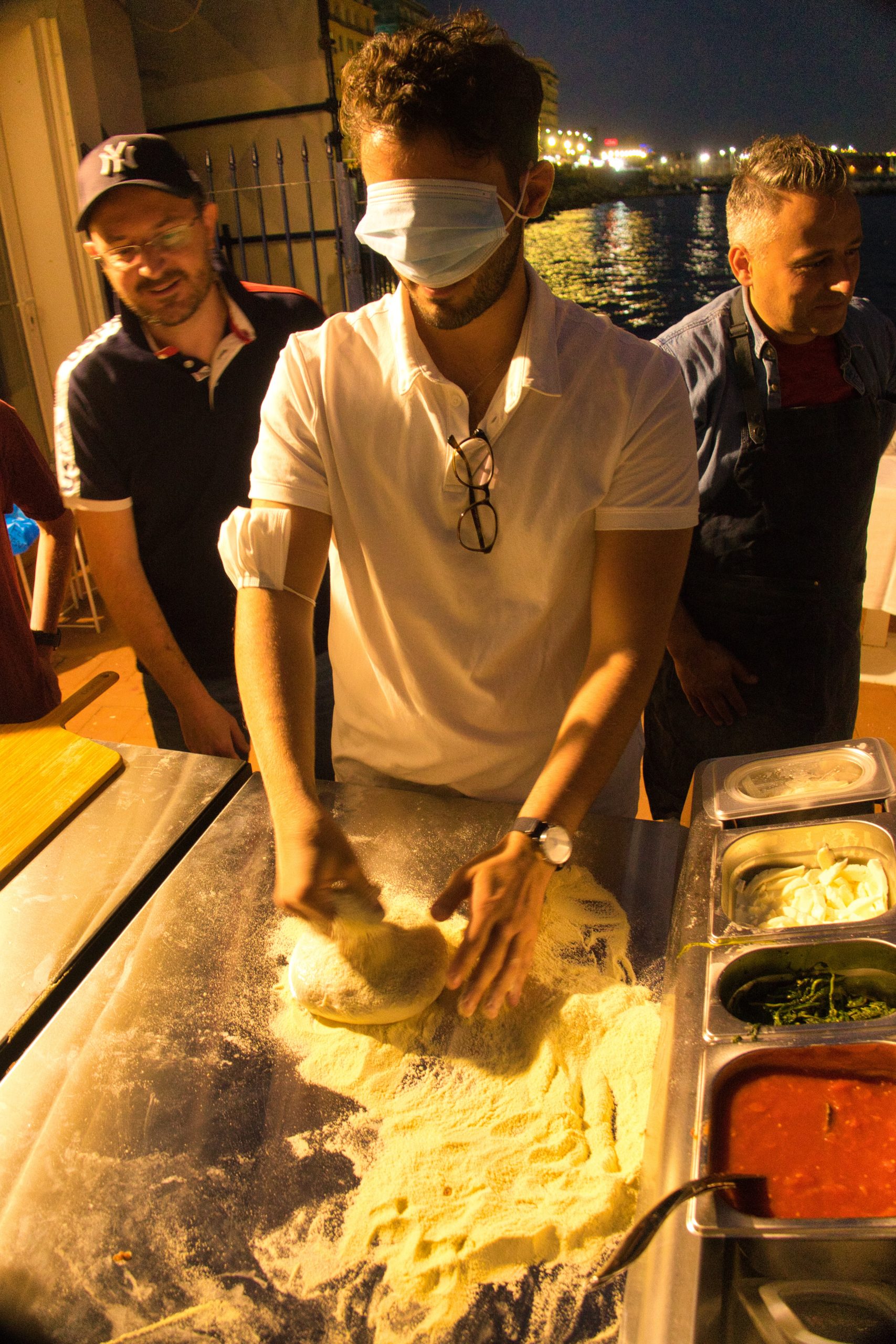 Tra le sedici persone selezionate, alcune hanno dovuto rinunciare per motivi logistici, e solo dieci sono riuscite a essere presenti: ma chi lo ha fatto ha viaggiato anche da lontano pur di esserci, venendo persino dal nord Italia, o addirittura dalla Spagna! La serata è trascorsa piacevolmente, con un ritmo animato e momenti molto divertenti (mitica la sfida della pizza fatta con membri presi dal pubblico e bendati con le mascherine). C’è stato spazio anche per le pizze sfornate da pizzaioli professionisti, con la partecipazione straordinaria di Errico Porzio e i pizzaioli selezionati dallo stesso Molino Vigevano, Angelo Lino e Aniello Di Maio.