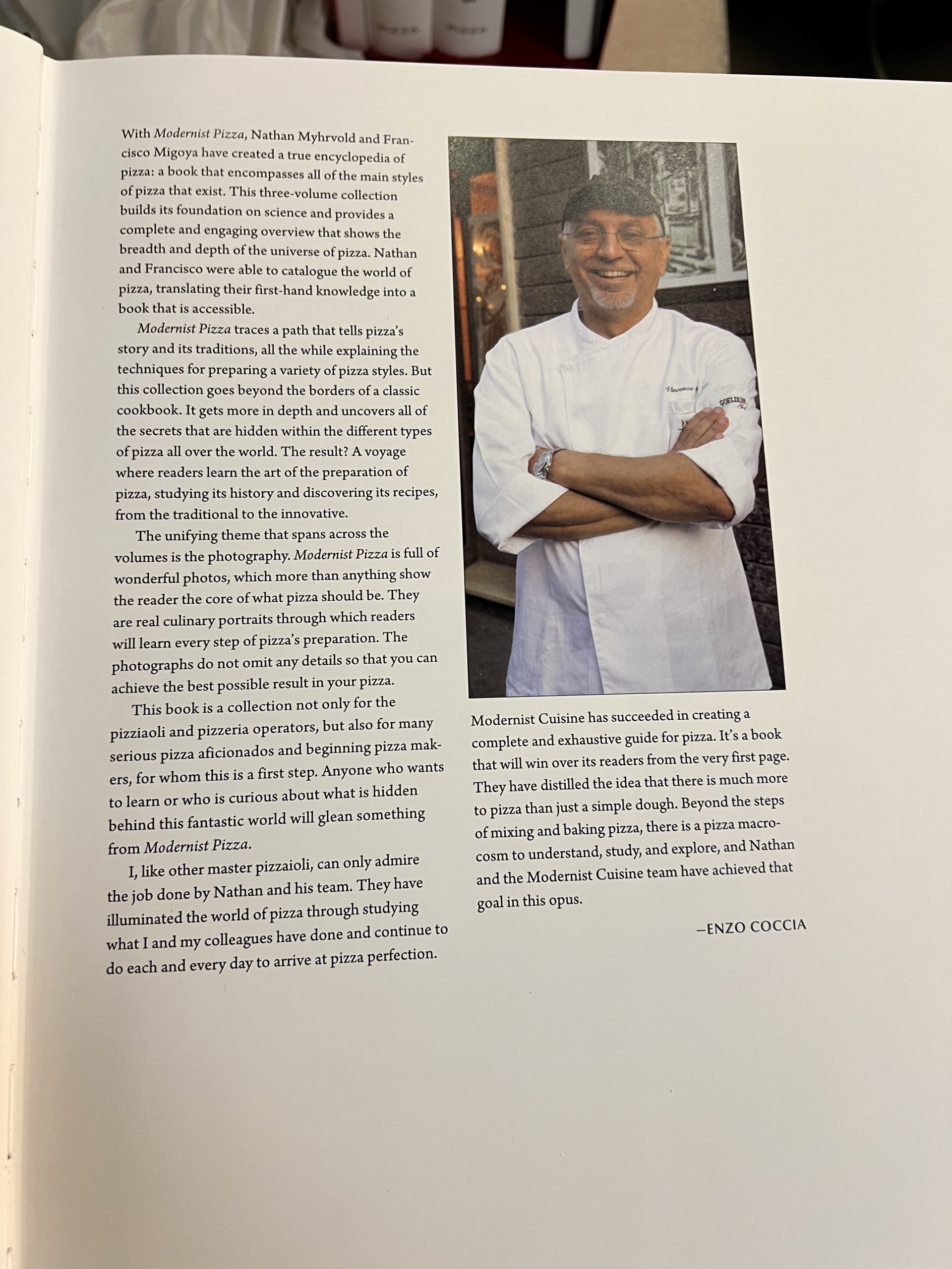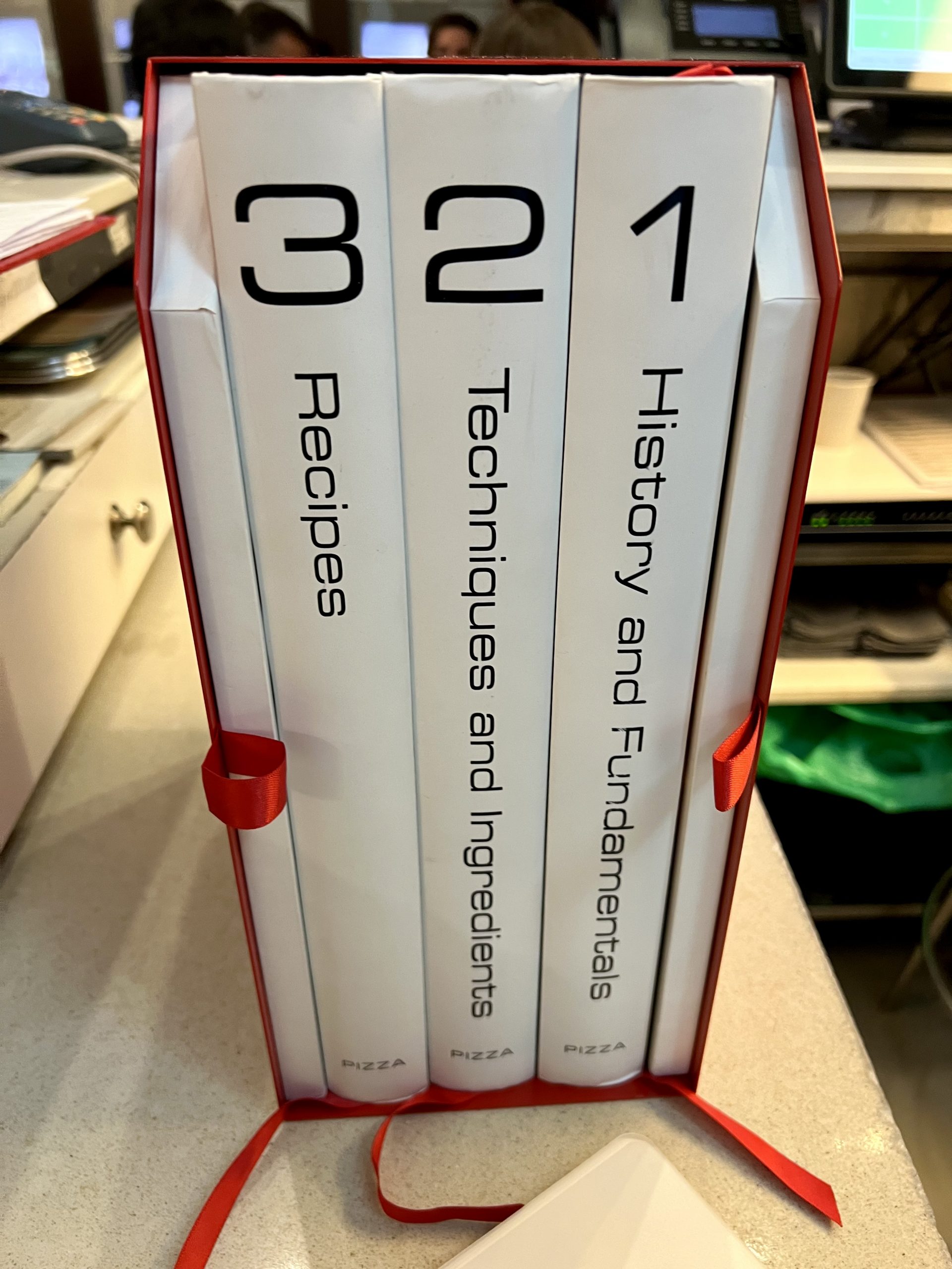 • Il tuo libro è stato soprannominato anche l’Enciclopedia della Pizza, perché assomiglia proprio a un’enciclopedia, consiste di tre volumi e sono volumi belli pesanti. Ed ha anche un prezzo abbastanza considerevole [350 €, NdR]. Per cui, ti chiedo: diciamo che sono un appassionato di pizza, ma porto a casa uno stipendo di 1200 euro al mese. Hai meno di un minuto di tempo per convincermi ad acquistare il tuo libro.