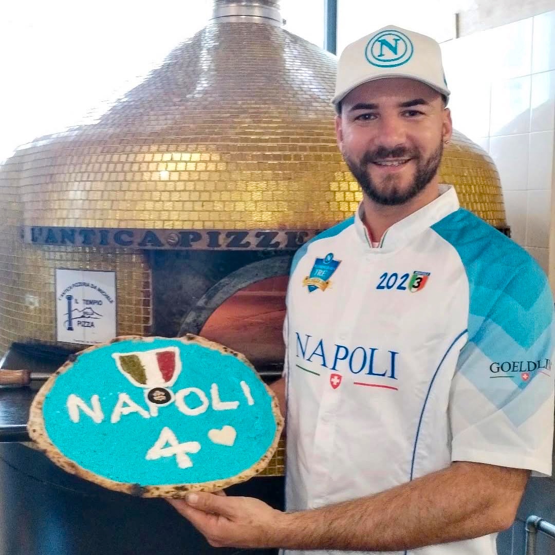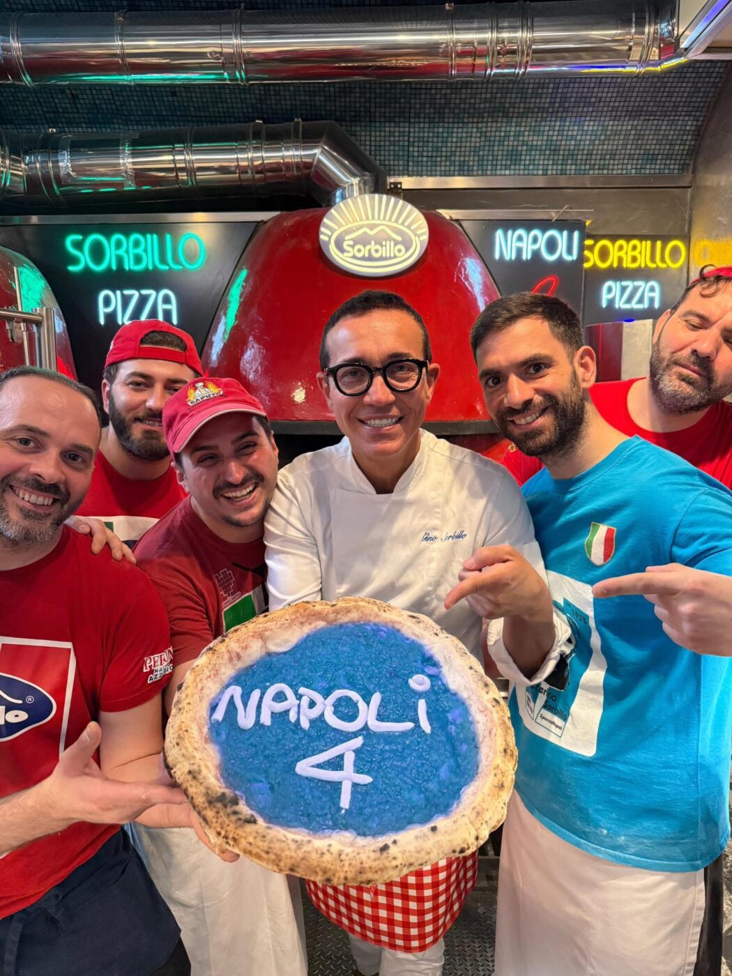 Il Pizzaiolo Antonio Greco, che lavora negli Stati Uniti, ha fatto forse l’omaggio più appetibile alla vittoria del quarto titolo.