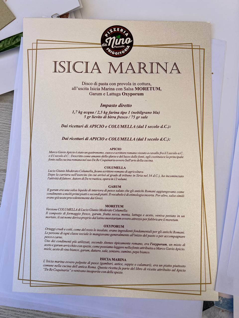 Questa volta la pizza presentata dal pizzaiolo finalista si chiama Isicia Marina ed è fatta con provola in cottura e in uscita Isicia Marina con salsa Moretum, Garum e lattuga Oxyporum.