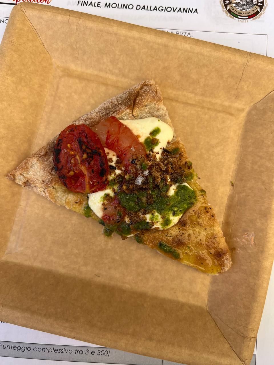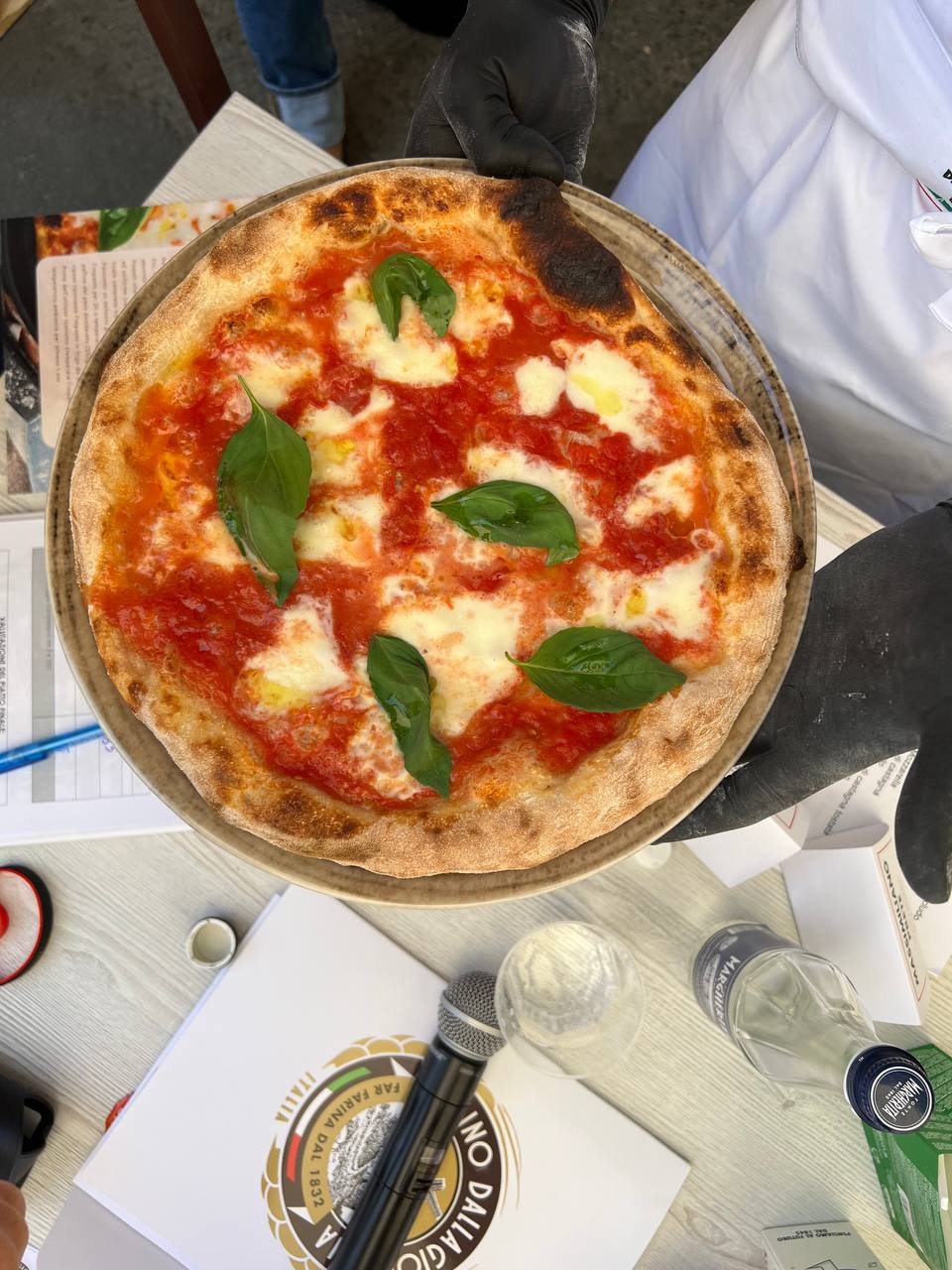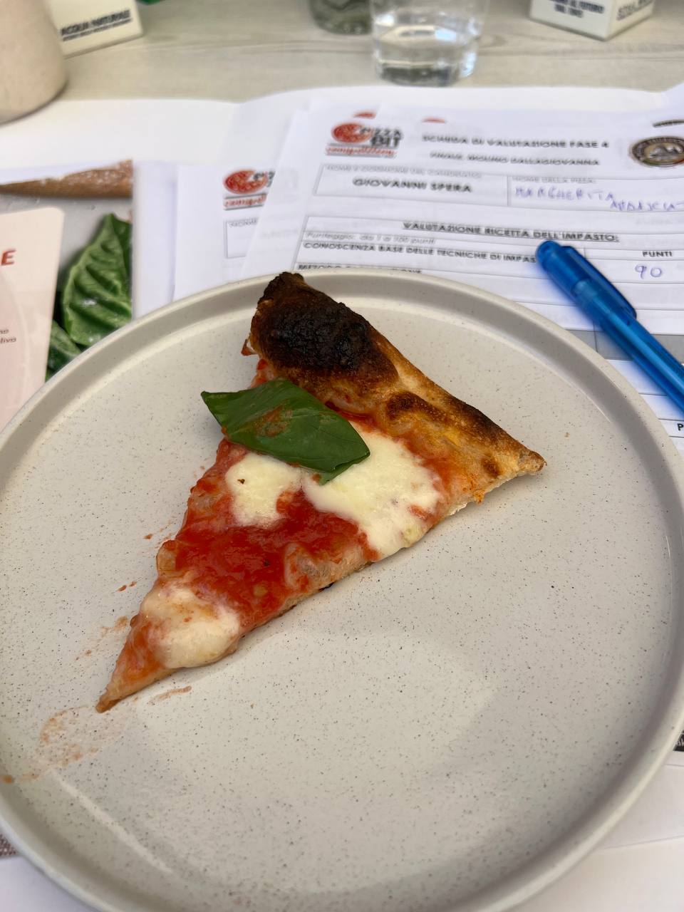 Giovanni Spera si è presentato invece con un grande classico ovvero la sua versione della Pizza Margherita denominata Margherita Ambasciatrice fatta con fior di latte, pomodoro San Marzano, olio EVO e basilico fresco.