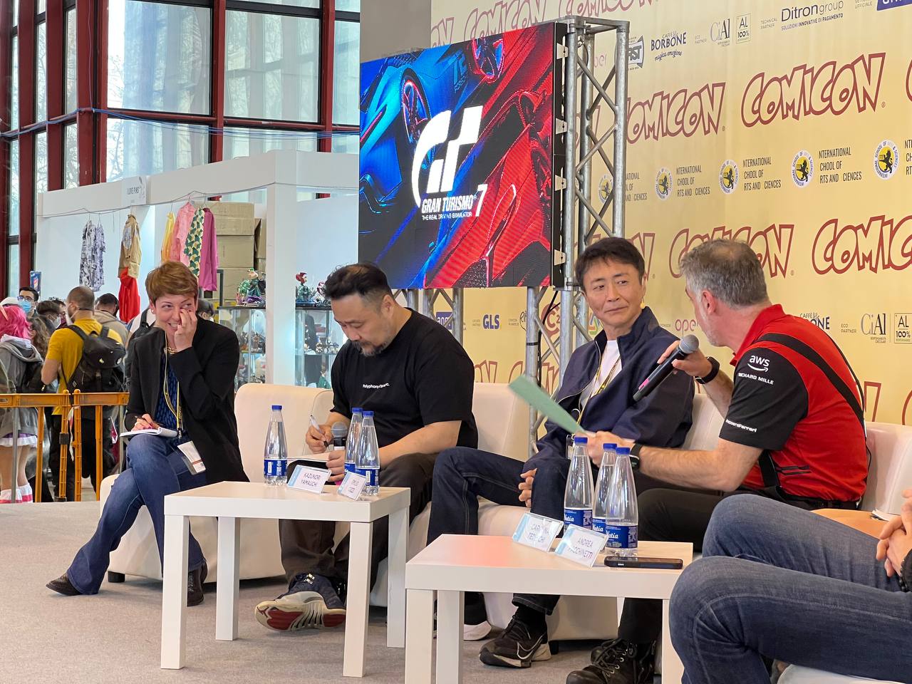 A livello personale, uno dei momenti più belli è stato incontrare nuovamente Kazunori Yamauchi, il celebre game designer e sviluppatore giapponese ideatore del franchise Gran Turismo, presente in fiera in collaborazione con Sony Interactive Entertainment Italia per un panel dal titolo “Gran Turismo: Racing time”. Non soltanto una saga videoludica a cui mi sento profondamente legato ma anche uno sviluppatore creativo unico nel suo genere, che ho intervistato diverse volte fino a presenziare qualche anno fa quando ricevette la laurea magistrale Honoris Causa in Ingegneria del Veicolo presso l’Università degli Studi di Modena e Reggio Emilia.